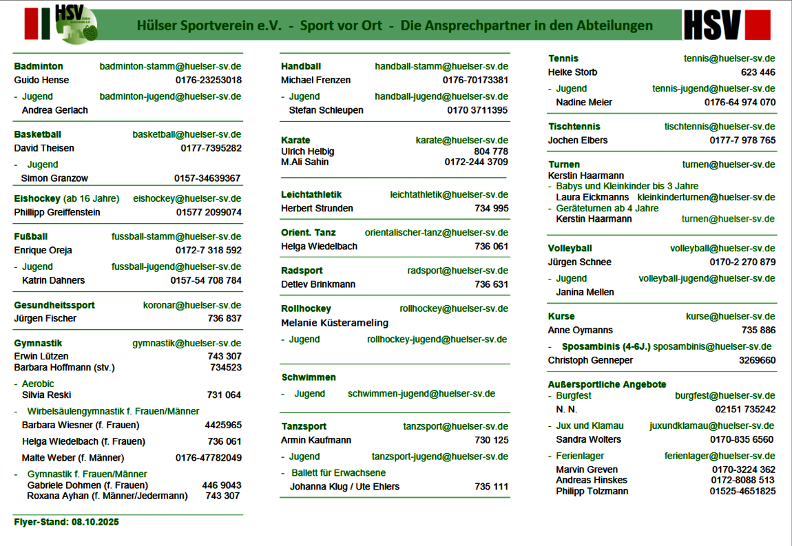 Schaut mal rein in unseren Flyer Hülser SV - Sport vor Ort! (s.u.)