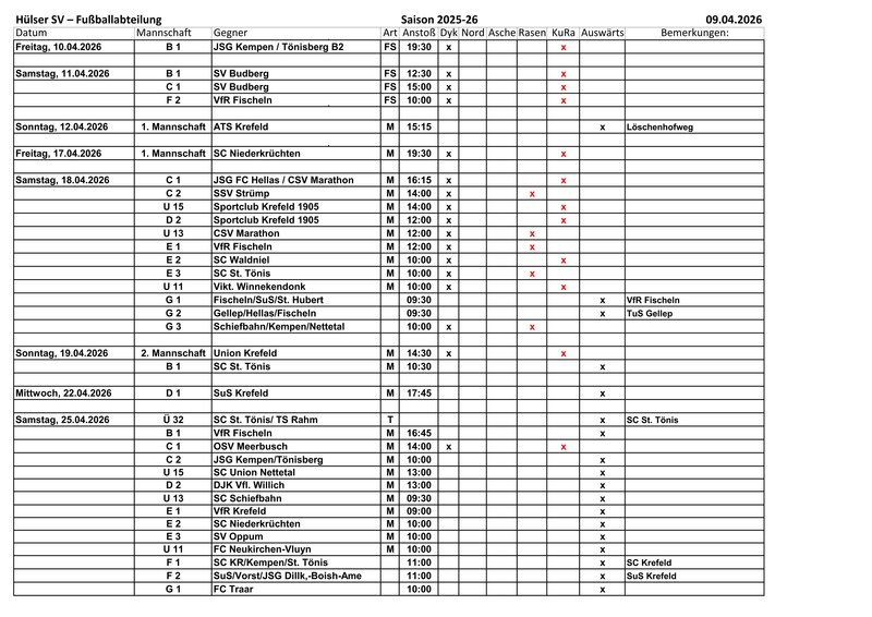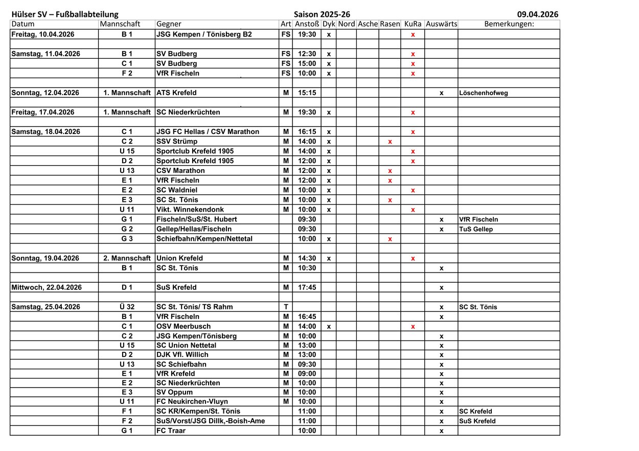 Aktuteller Spielplan zum Ausdrucken vom