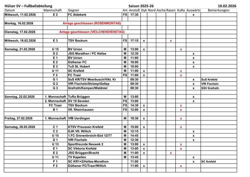 Ordnungen zum Spielbetrieb - Aktueller Spielplan