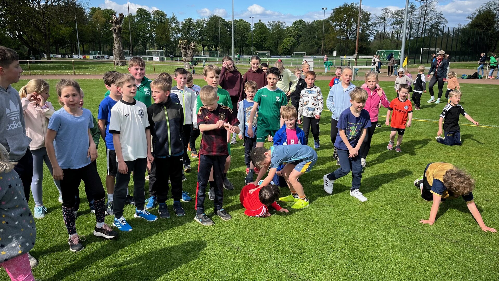 In dieser Woche fand das zweite Mal nach den Osterferien das Training draußen am Sportplatz Hölschen Dyk statt. Es war viel los: 45 Kinder waren dabei ! Sie wurden in 3 Gruppen aufgeteilt und trainierten mit dem jeweiligen Trainer diverse Disziplinen - die ersten Resultate für das Sportabzeichen wurden notiert …