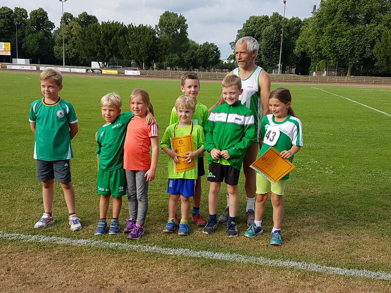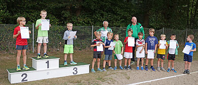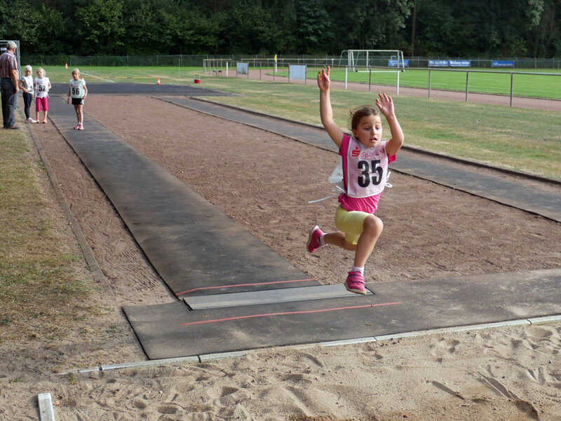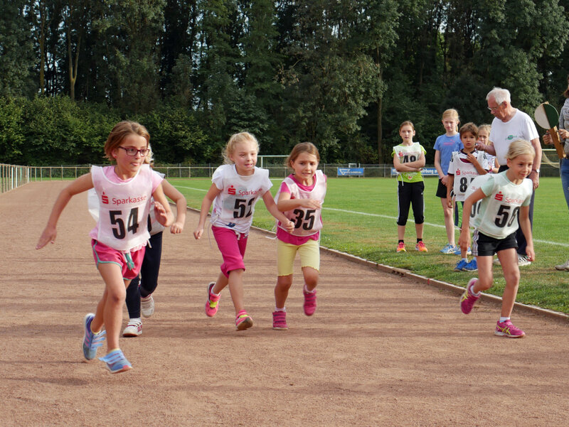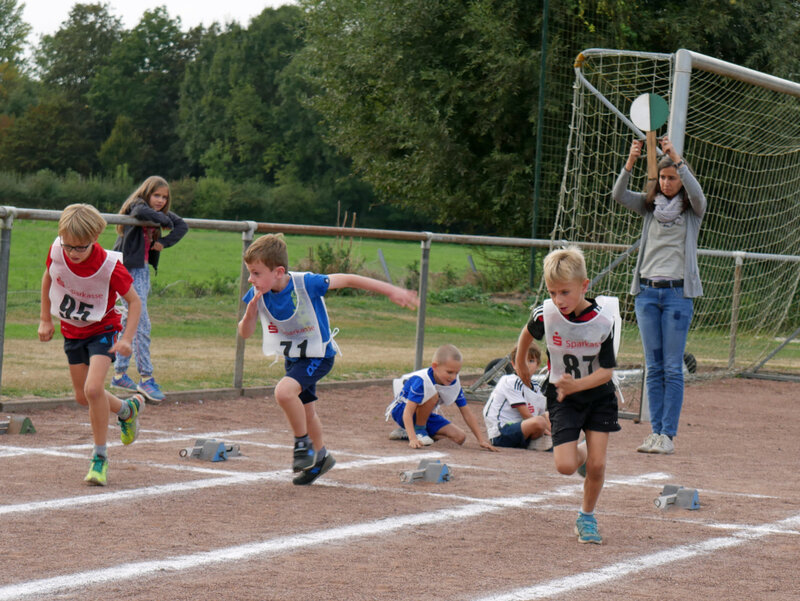 Am 11. Sept als auch die Woche vorher am 4. Sept fanden die Hülser Meisterschaften statt - die älteren Jahrgänge (2012 bis 2014) als auch die jüngeren (2015 bis 2017) duellierten sich im 30 bzw. 50m Sprint, Schlagballweitwurf, Weitsprung sowie im 800 m Lauf. Anschließend gab es jeweils eine Siegerehrung, bei denen die Medaillen in Gold, Silber und Bronze übergeben wurden - was zu glücklichen Gesichtern führte ...