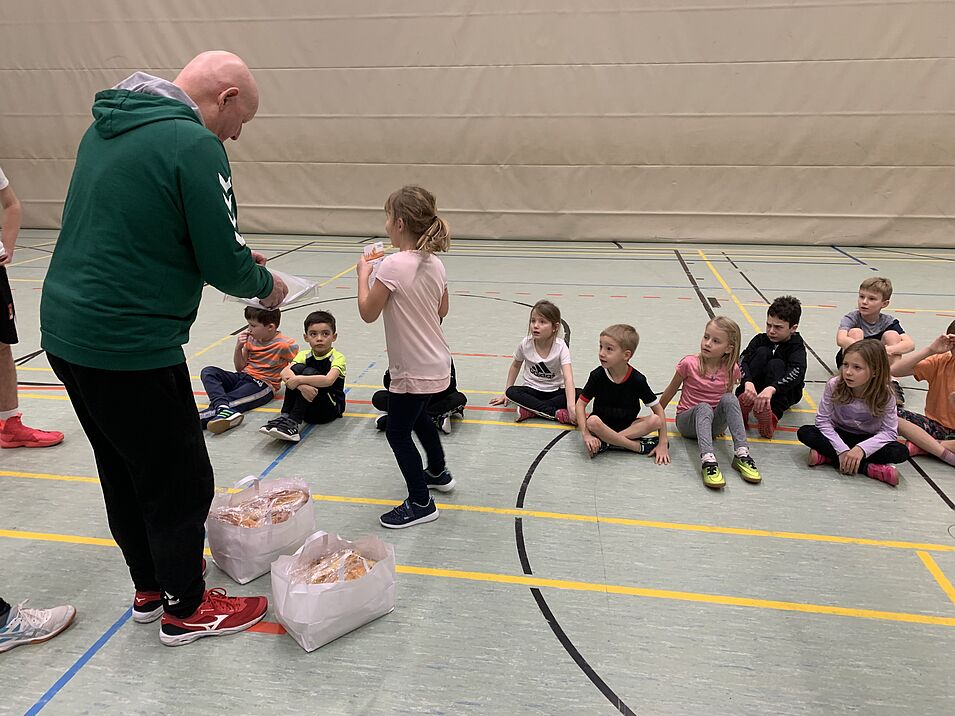 Obwohl der Nikolaus schon am letzten Freitag ganze Arbeit geleistet hatte, hatte er zudem den Kindern am gestrigen Montag noch einiges an Süßem hinterlassen ... das wurde dann nach dem Training in beiden Kindergruppen gerne in Empfang genommen ...