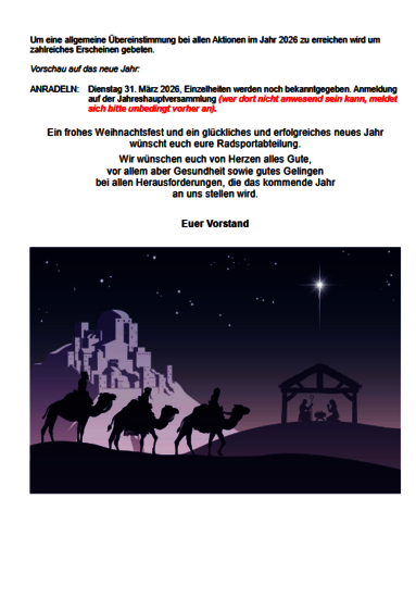 Eure HSV - Abteilungsleitung Radsport wünscht Frohe Weihnachten!