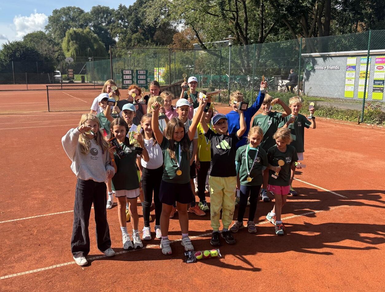 Auch in diesem Jahr haben die Kinder und Jugendlichen auf unserer Anlage am Hölschen Dyk ihre Clubmeisterinnen und Clubmeister ermittelt. Traditionell fanden diese im engen Zeitfenster nach dem Kinder- und Jugendcamp und zum Teil parallel zu den Kreismeisterschaften statt. Trotzdem haben sich eine ganze Reihe von Kids in fünf Konkurrenzen gemessen. Und das sind die Sieger: Kara Stoffelen (U15 Mixed), Tim Dückers (U12 Mixed), Niklas Kreiner (U10 Junioren), Mara Wahlicht (U10 Juniorinnen) und Hannes Rieck (U8 Mixed). Grün-weiße Glückwünsche gehen raus an alle Gewinnerinnen, Gewinner und Platzierte – ihr seid mega!