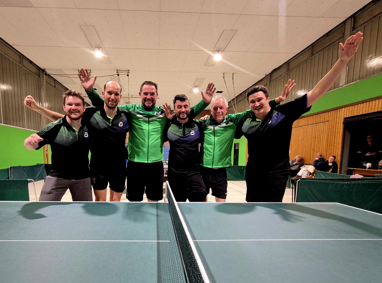 Hunke (3:0) und Stangier in vier Sätzen gewannen dabei ihre Einzel zum Auftakt. Zwar ging das folgende Doppel verloren und die Hausherren kamen zum 2:2-Ausgleich. Doch erneut „Bär“ Hunke glatt in drei Sätzen und dann der nervenstarke Ehlers knallhart nach 1:2-Rückstand in fünf Sätzen machten den Deckel in der Zwei-Stunden-Schlacht drauf.