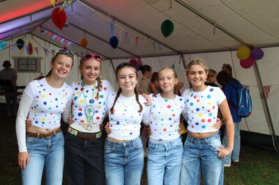 Es war toll zu sehen, welche Ideen die Kinder mit dem Thema BUNT und KONFETTI verbinden. Es gab unzählige bunte Perücken, Clowns, farbige Hippie-Kostüme und toll dekorierte Shirts mit allem was man unter Konfetti verstehen kann. Es wurde vorher offensichtlich mit viel Leidenschaft geklebt und gebastelt. Das Zelt auf dem Hölschen Dyk war natürlich wieder passend zum Motto fröhlich und schön geschmückt - es konnte also losgehen!