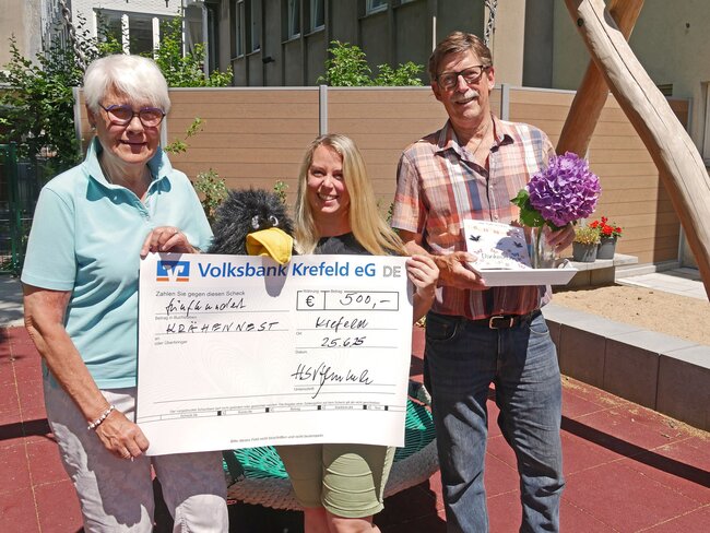 in diesem Jahr dem "Krähennest Krefeld" die Hülser Spende an die stellvertretende Leiterin Sabrina Raab überreichen.