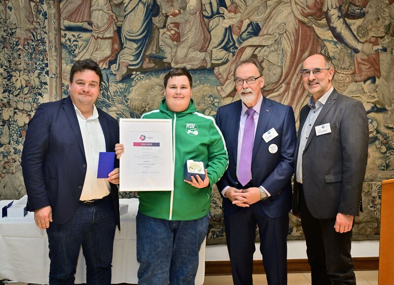 Yannick Dahners, in diversen Tätigkeiten u.a. als Schiedsrichter und Trainer der Minis für die Fußballabteilung unterwegs, wurde ebenso wie Julian Hoeninger sowie Malte und Lennart Zachau von der Rollhockeyabteilung für ihr ehrenamtliches Engagement im Hülser Sportverein mit Urkunden und Medaillen im Rahmen „Junges Ehrenamt“ vom Stadtsportbund Krefeld geehrt.